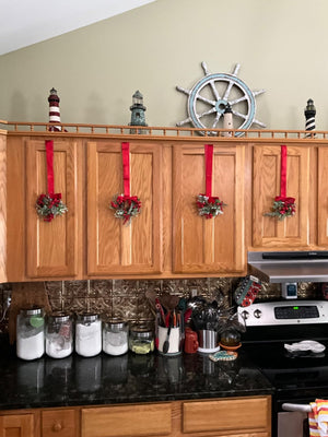 Gebruik de linten om de kransjes eenvoudig aan kastdeuren of ramen te hangen. Ze zijn lichtgewicht, dus geen zware bevestigingsmiddelen nodig.